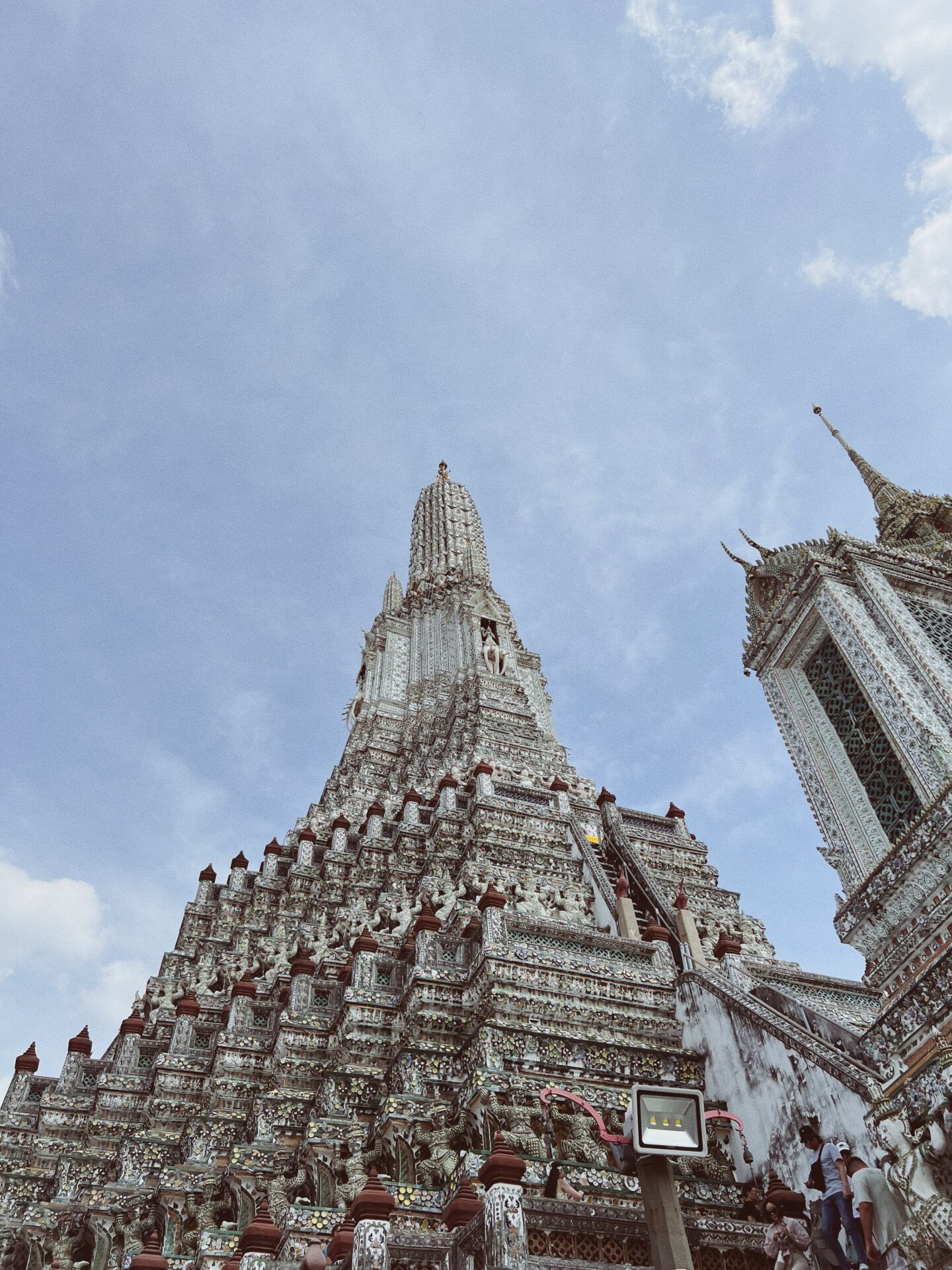 Điểm dừng chân đầu tiên của em là Wat Arun, ngôi đền Bình Minh với kiến trúc tinh xảo, lấp lánh bởi vô số mảnh sứ và thủy tinh. Nhìn từ xa, tòa tháp cao vút vươn mình bên bờ sông đẹp đến nao lòng. Bạn có thể thử cảm giác mạnh một chút khi leo lên những bậc tháp cao nhất để chiêm ngưỡng toàn cảnh sông nước và thành phố. Giá vé vào cửa là 100THB. (cập nhật…)
