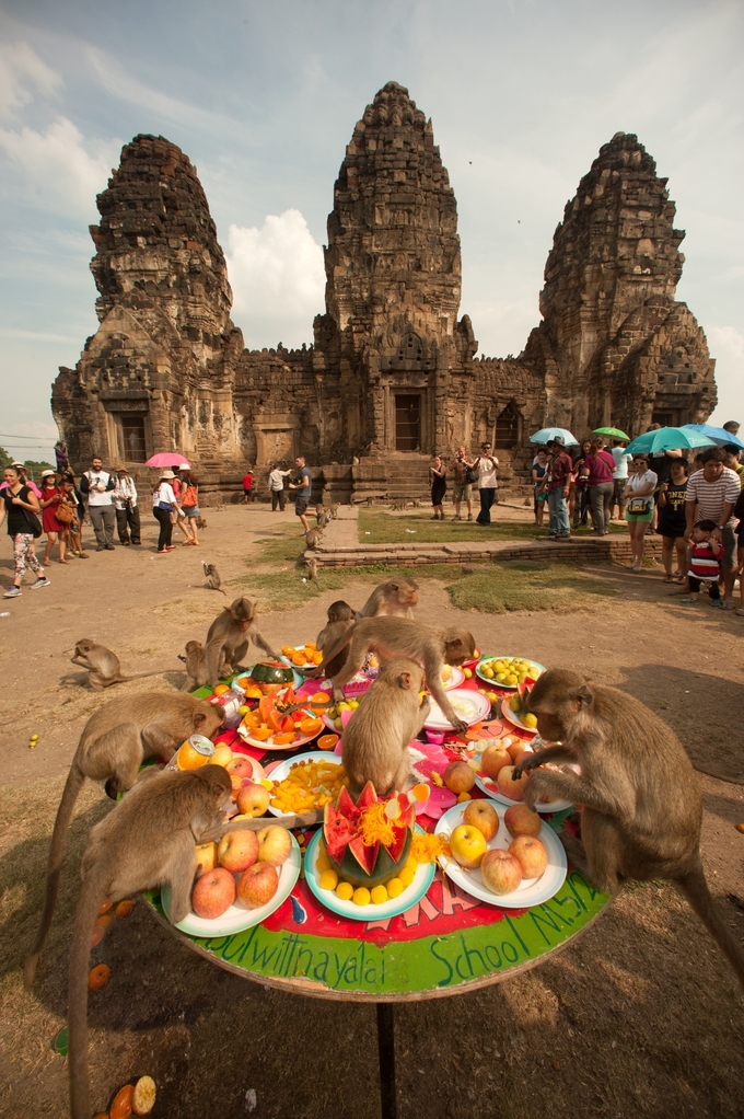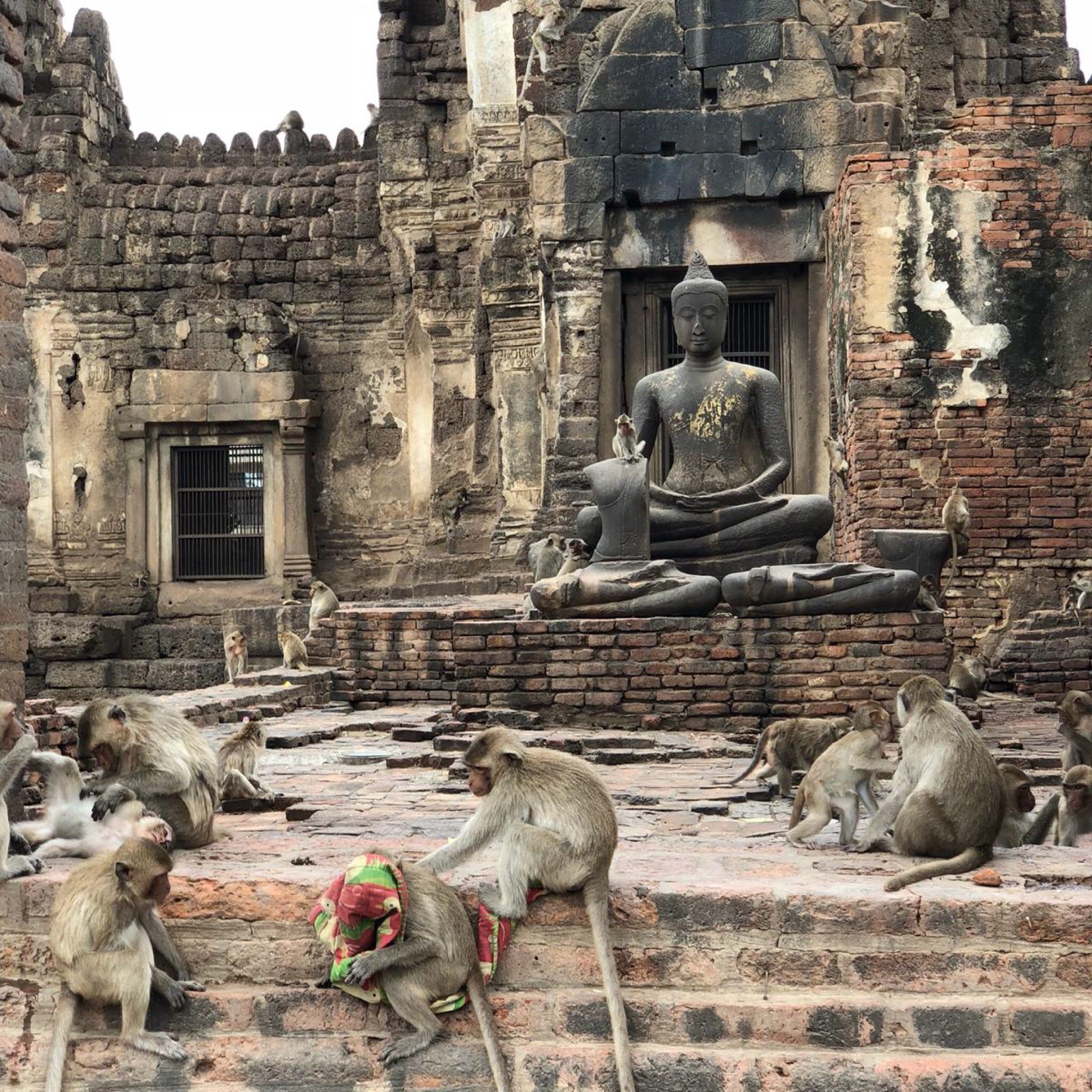 Bước chân đến Lopburi, bạn sẽ cảm nhận ngay một không khí rất khác. Không phải là sự ồn ào náo nhiệt của Bangkok, mà là một nét bình yên xen lẫn chút “hoang dã” đáng yêu. Khỉ ở đây nhiều vô kể, chúng hiện diện ở khắp mọi nơi, đặc biệt là quanh khu vực Prang Sam Yot và Sarn Phra Karn – những di tích cổ kính. Cứ ngỡ như mình đang lạc vào thế giới của chúng vậy, mỗi chú một vẻ, từ tò mò đến tinh ranh, tạo nên một khung cảnh vô cùng sống động.